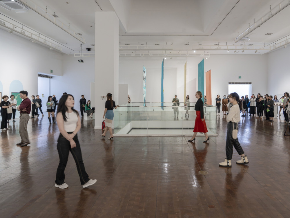 이재이, 〈아리조나 카우보이(as part of Far West, So Close)〉, 2023. 퍼포먼스, 음향 설치. 약 10분(퍼포먼스), 8분(음향). 원곡: ‘아리조나 카우보이’(1955, 전오승 작곡, 김부해 작사). 편곡: 보엠. 퍼포머: 김예원, 닷시냠, 보엠, 스텔라, 아넷, 장웨이, 주영규. 퍼포먼스 프로듀서: 신진영. 제12회 서울미디어시티비엔날레 제작 지원. 작가 제공. 제12회 서울미디어시티비엔날레 《이것 역시 지도》. 서울시립미술관. 2023. 사진: 글림워커스
