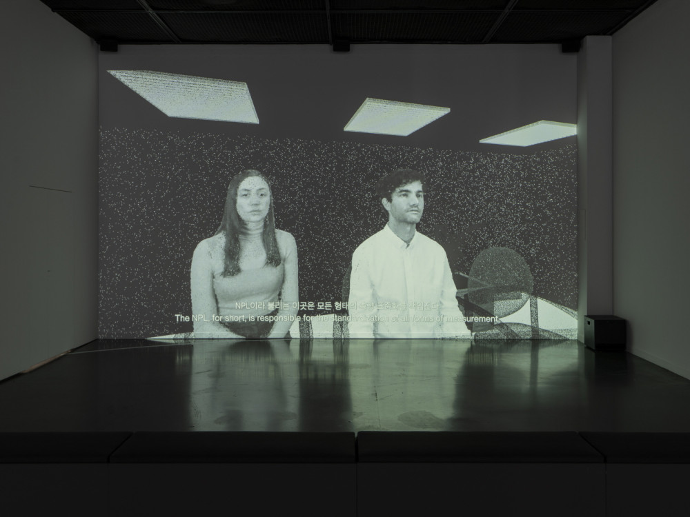 사샤 리트빈체바&베니 바그너, 〈콘스탄트〉, 2022. 비디오 설치. 40분. 제작: 사샤 리트빈체바&베니 바그너, 기욤 카이요. 설치 협력: 이사벨 오그덴, 마테오 마스트란드레아(OBSCENE). 미디어보드, 베를린 브란덴부르크; 독일 연방 정부 문화 미디어부 제작 지원. 작가 제공. 제12회 서울미디어시티비엔날레 《이것 역시 지도》. 서울시립미술관. 2023. 사진: 글림워커스