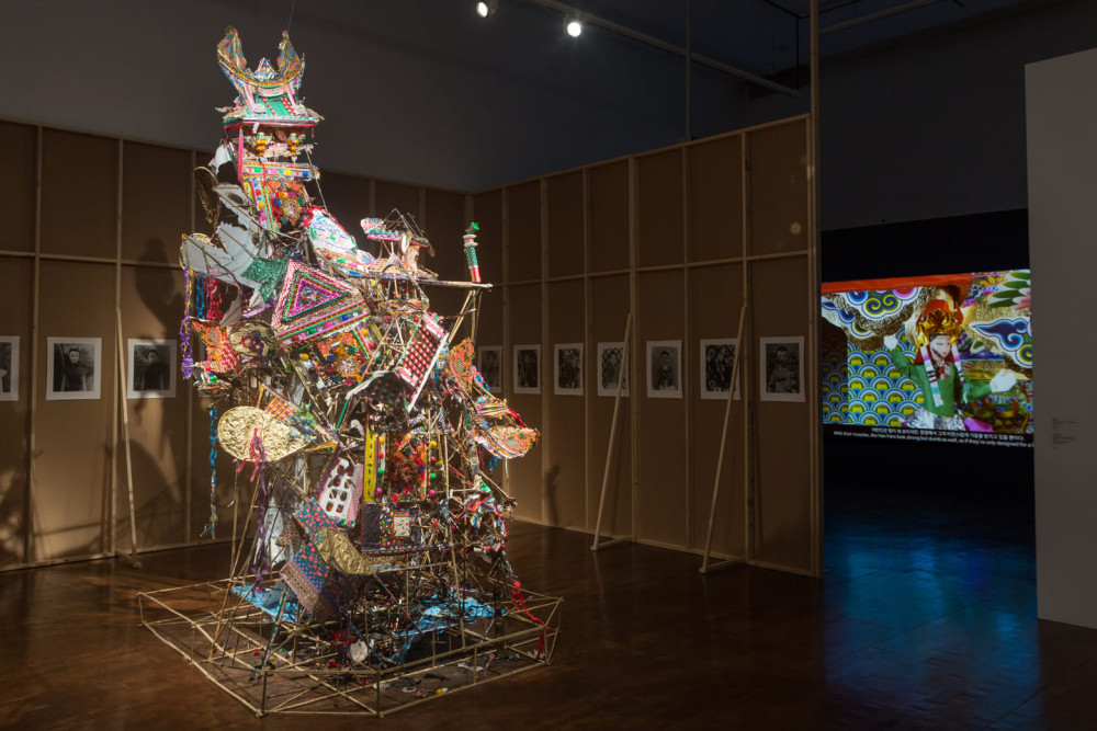 쑤는 탁월한 재주로 실제 세계와 상상의 인물들을 엮어내고, 간학제적인 미디어와 문화적 사고로 점점 더 저속해지는 대만의 장례의식을 혁신적인 예술 언어로 변모시킨다. 동시에 옛 대만어를 통해 저승으로 가는 여행을 구성한다. 비디오와 설치, 민속 종이 공예품으로 구성된 작품 〈화산치앙〉은 삶의 영역과 죽음의 영역을 비교함으로써 식민화된 대만의 역사와 정치 문화를 바라보는 새로운 시각을 제시한다. [제12회 타이신 아트 어워드(타이신 은행 문화예술재단) 전시에서]
