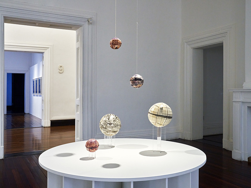 〈공간과 시지각 1989〉는 작은 구슬과 같은 둥근 현상을 가진 ‘사진-조각’이다. 마치 작은 구슬 안에 온 우주가 담겨있는 것처럼 지름 10cm에 불과한 작은 형상들은 계곡에서 보이는 숲과 바위, 산등성이에서 내려다보이는 골짜기, 거기에 있는 아담한 집과 마당, 그 골짜기 너머 보이는 산 능선, 그 위로 하늘과 떠다니는 구름처럼 거대한 자연의 풍경을 재현한다. 유사한 형태를 가진 〈공간과 시지각 1987〉과 마찬가지로 이 작품도 우리의 동공(홍채)에 맺히는 둥근 공간에 관한 시지각적 현상을 다루고 있다. 조각의 작은 크기가 광활한 풍경과 대비를 이루며 관객으로 하여금 스케일, 거리, 응시의 시점 등 여러 차원에서 감상을 가능하게 한다.