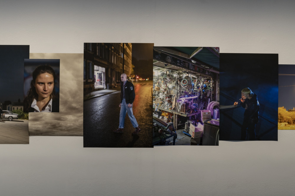 〈추락〉은 토비아스 칠로니의 최근 몇 년 간의 사진 작업을 새롭게 조합한다. 극우 테러리스트를 좀비로 표현한 〈언데드〉(2020), 팬데믹으로 인한 봉쇄 기간 동안 주변의 사물과 풍경을 관찰한 〈인벤토리 시리즈〉(2020)를 비롯해, 독일, 일본, 한국, 몰타의 도시에서 밤을 배경으로 촬영한 청년들의 초상을 한데 뒤섞는다. 각각의 연작이 촬영한 지역의 특수한 동시대적 상황과 문화 현상을 드러낸다면, 이렇게 연작의 맥락을 벗어나 다시 배치된 사진들은 갈등과 방황 속에서 일상을 살아가는 오늘날 청년들의 보편적 내러티브를 구성한다. 나아가 삭막하거나 매혹적인 도시 풍경 사진을 초상 중간중간 배치해, 마치 옴니버스극처럼 대도시의 삶을 구성하는 여러 개개인의 이야기를 마주하게 한다. 미술관의 2층과 3층 두 곳에 총 25점의 사진이 전시된다.