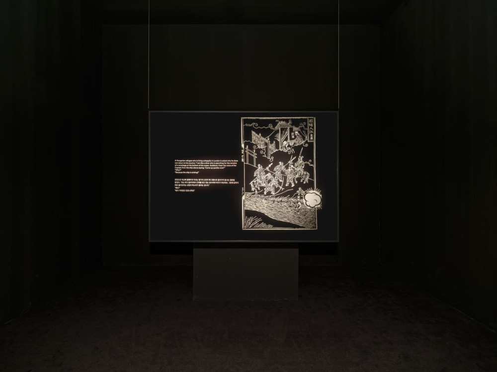 Hyung-Min Yoon, Black Book (Slideshow), 2019. two slide projectors, microprocessor, rear projection screen. 17 min 50 sec