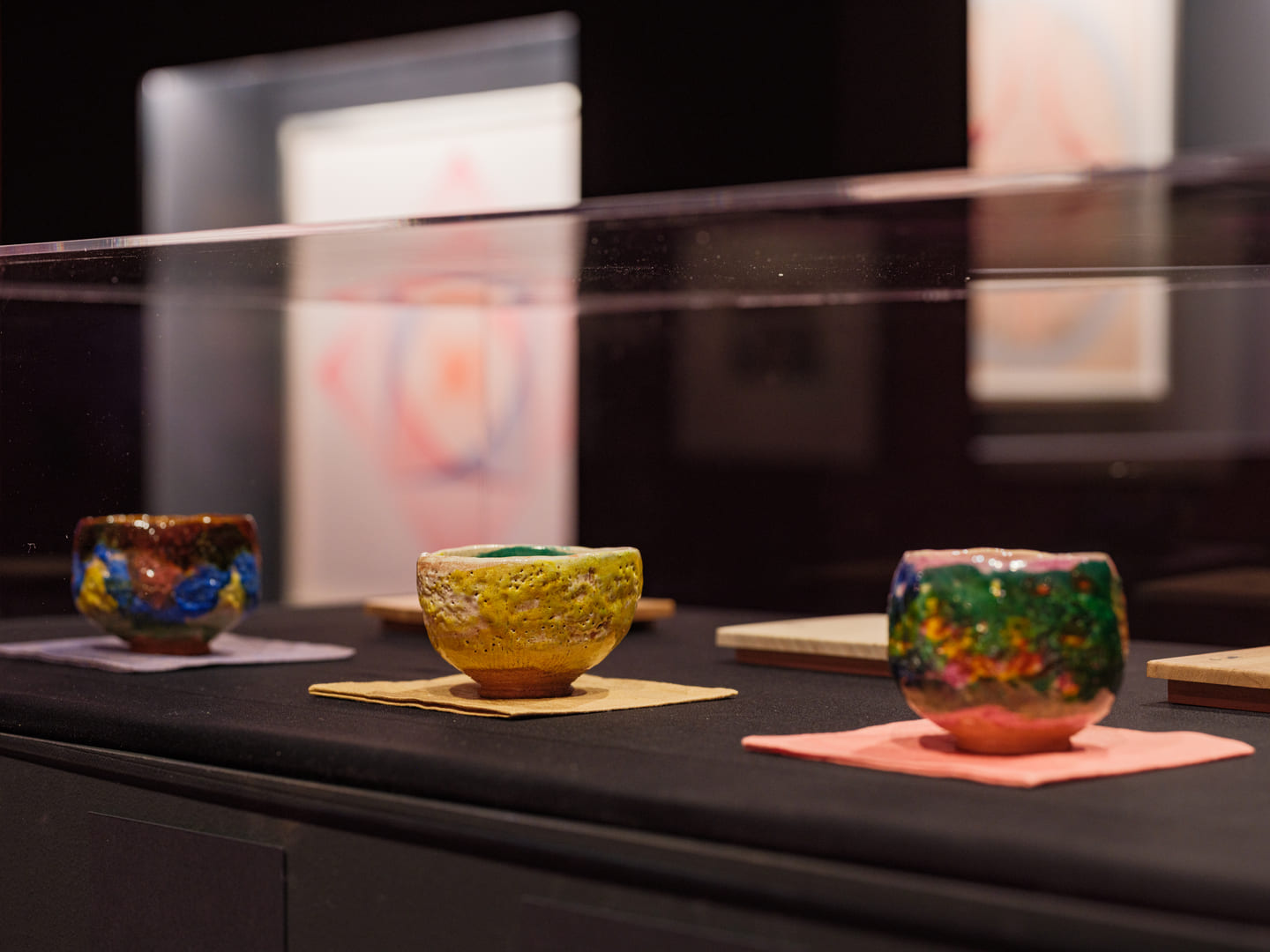 Onisaburo Deguchi, Yōwan (Scintillating Bowls)—Tengoku 31 (the heavenly kingdom, the 31st), 1944. raku pottery tea bowls. 8.4 × 11.3 × 11.2 cm