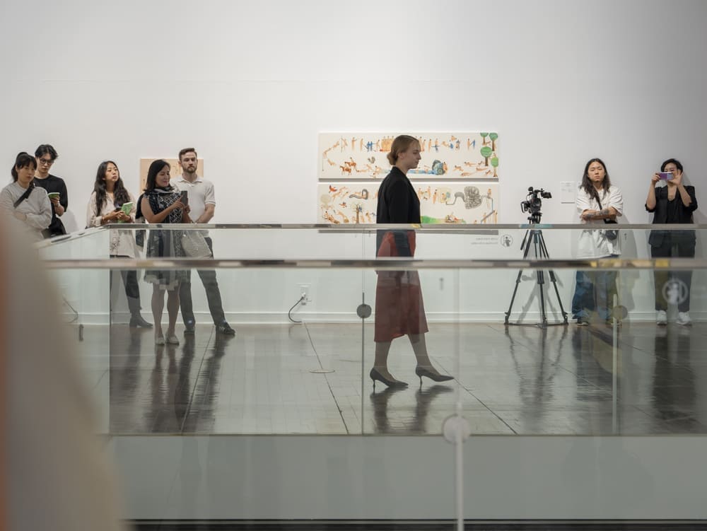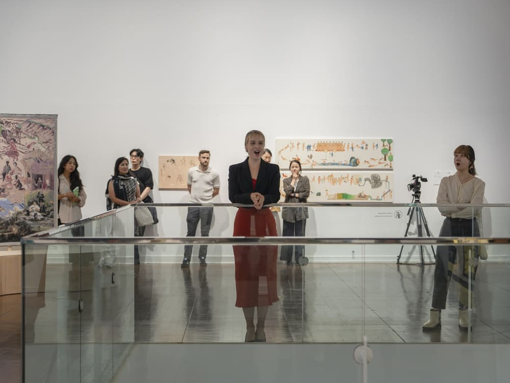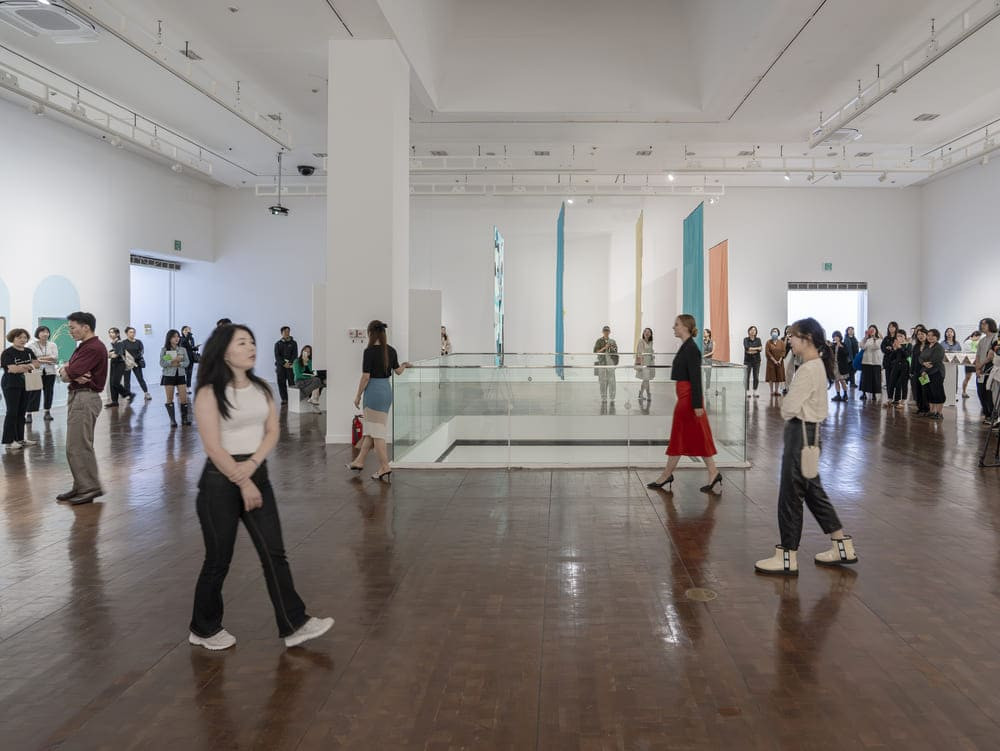 In her performance Arizona Cowboy (as part of Far West, So Close), which corresponds to a larger ongoing work, a choir of foreign singers residing in Korea performs the work’s eponymous song. Originally released in Korea in 1955 following the devastation of the Korean War, it became the first Westerninfluenced Korean pop song to enter the country’s cultural mainstream. Its lyrics rely on clichéd fantasies of “the American West,” reflecting the influence of the lingering U.S. military presence in postwar South Korea. The song also speaks to the desire of several generations of Koreans to return “home,” a sentiment provoked by forced displacement and longing for an impossible return to an idealized past.