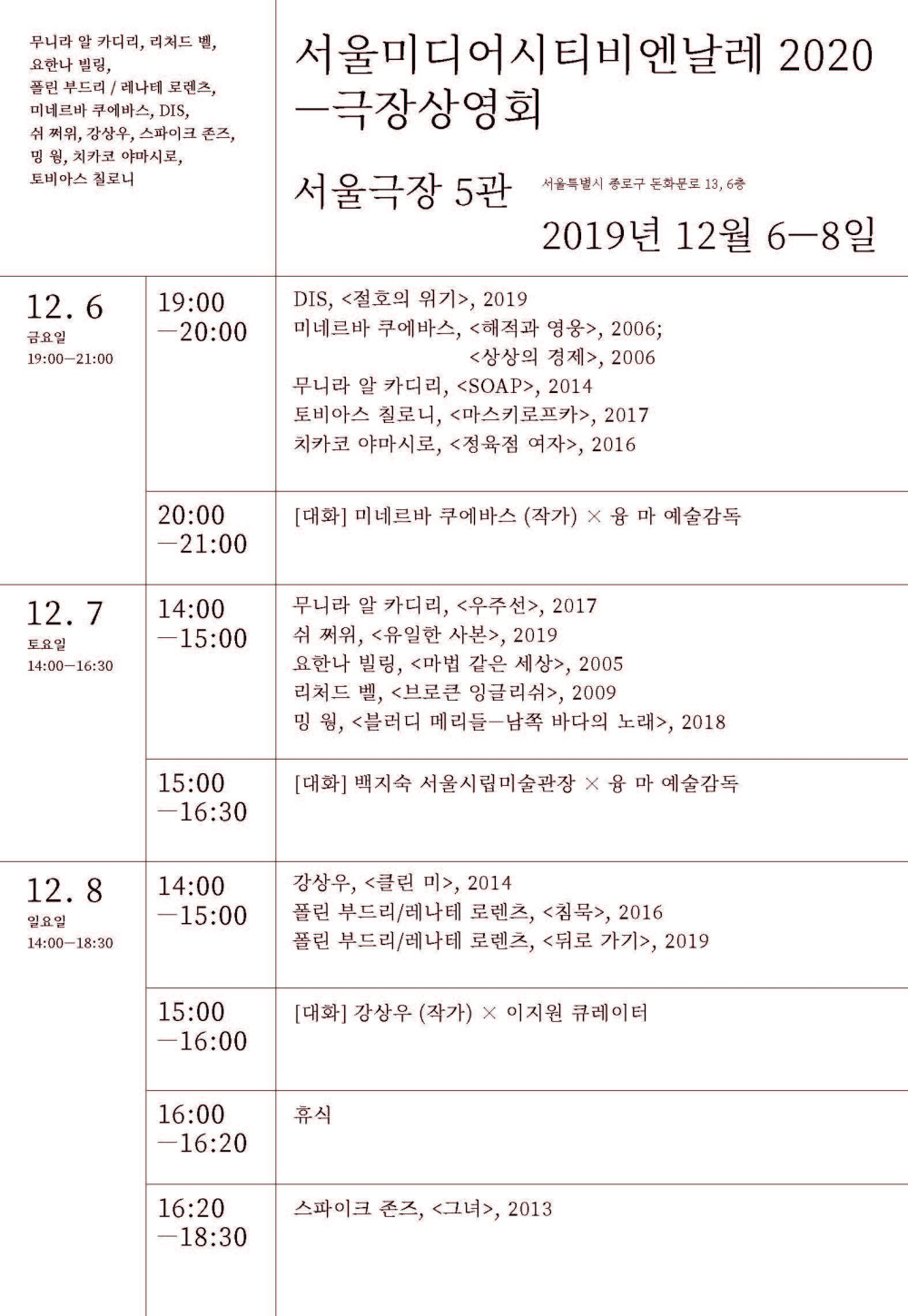 한국영상자료원 극장상영 리플릿서울시립미술관