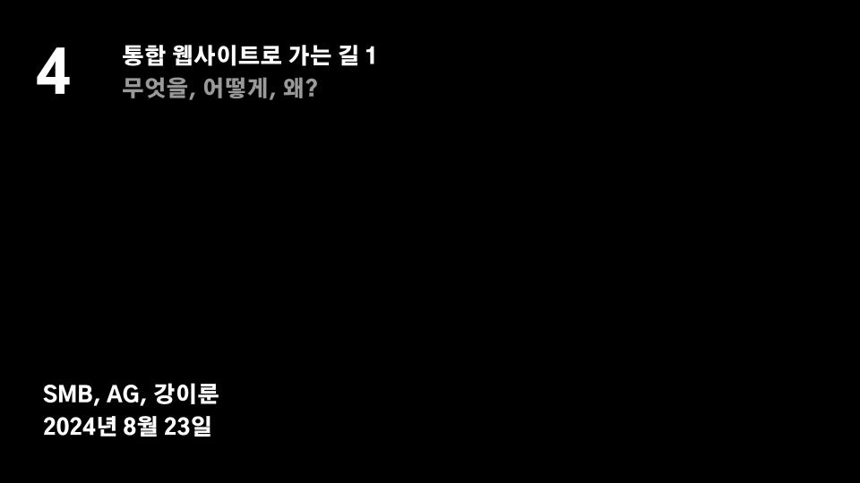 오픈 리서치 4장은 통합 웹사이트의 주요 콘텐츠인 DB 구축과 운영을 위한 각 참여자의 역할, 사용자에게 제공하는 서비스, 기존 사례 분석과 CMS와 SEO 리서치를 소개한다. 표지, 이미지와 글로 구성된 본문, 부록을 포함한 56장의 PPT 형식으로 공개되어 있다.