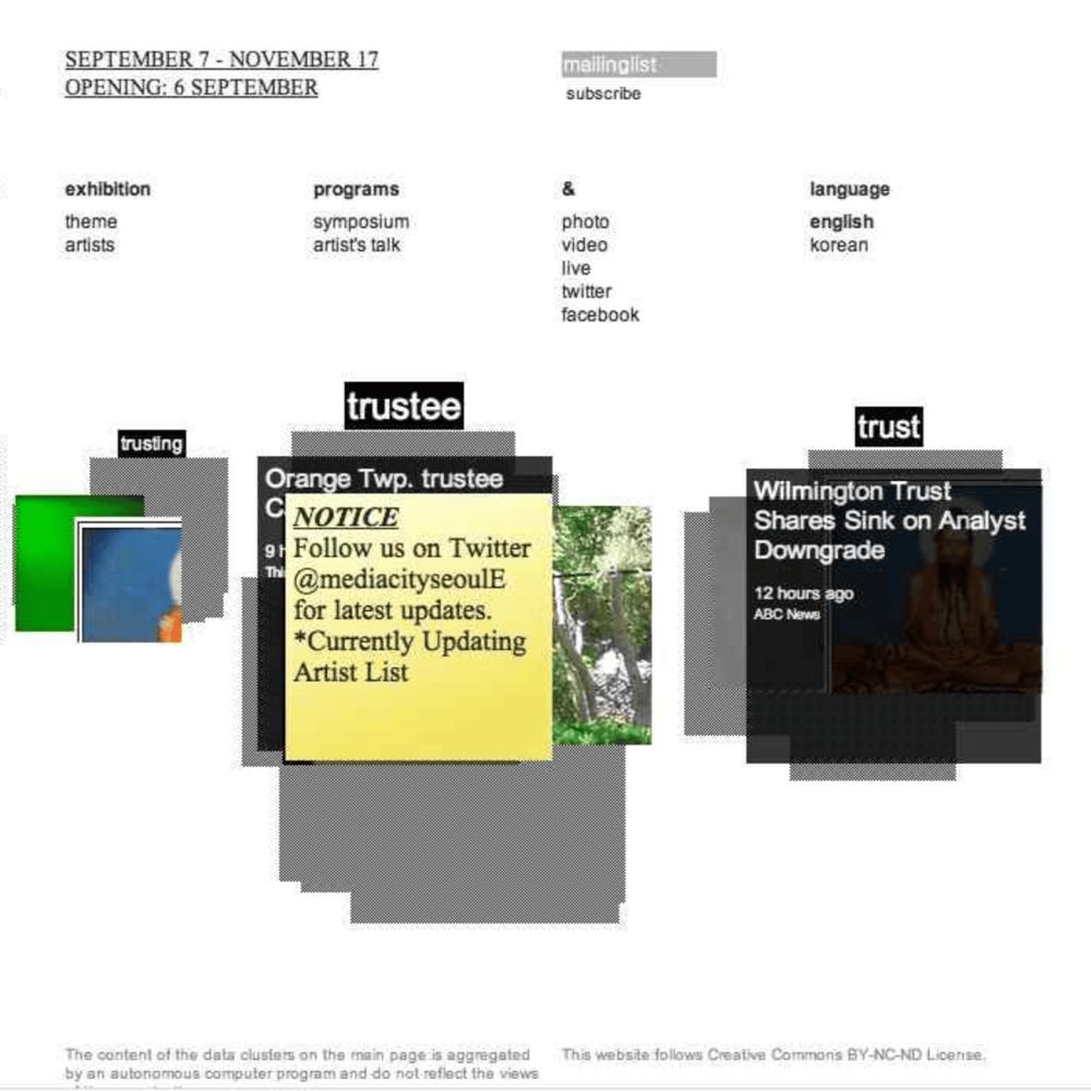 제6회 서울국제미디어아트비엔날레 미디어 시티 서울 2010 《트러스트》2010.09.07 – 2010.11.12 -