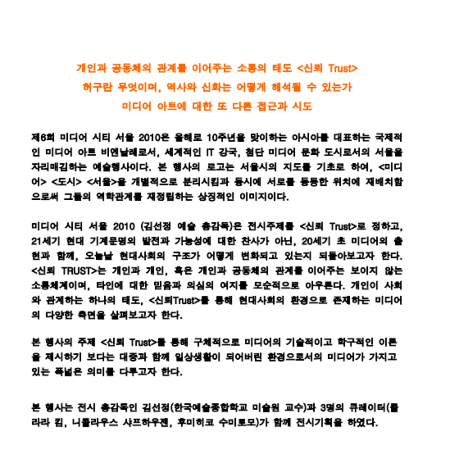 SMB06한국어미디어 시티 서울 2010 《트러스트》 프리뷰와 개막식2010.09.03 -