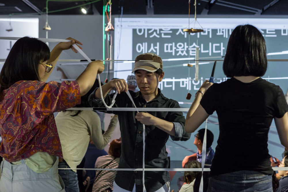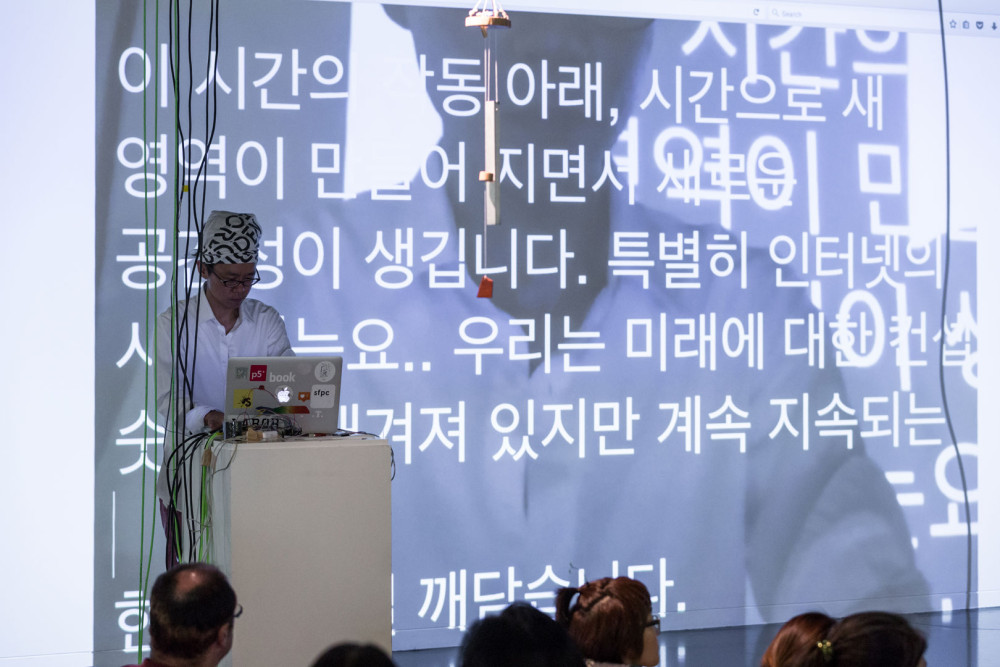 이 강연퍼포먼스를 위해 우리는 미래의 일곱 가지 가능성을 생각했다. 그리고 그 미래를 각각 풍경의 형태로 만들었고, 전자부품과 모터를 사용했다. 각기 다른 속도로 소리를 내는 풍경은 서로 교차하며 하나의 공통 미래가 된다. 그곳에는 절제된 감각과 추상적인 감각이 공존한다.
