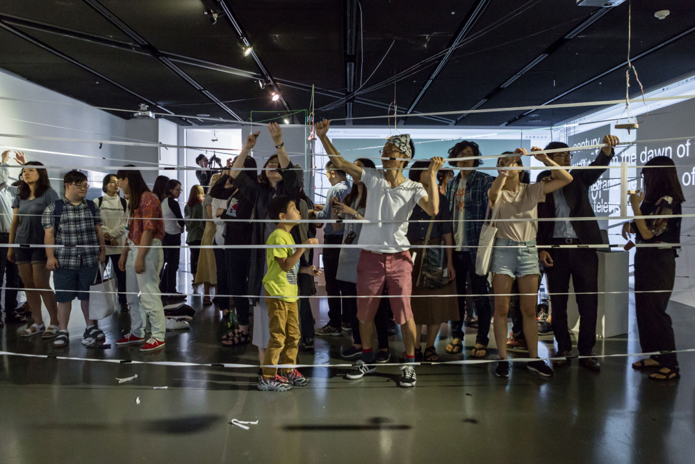〈미래 보증〉은 영어와 한국어, 한국 수화와 미국 수화로 동시에 진행. 이 퍼포먼스는 관객의 참여로 이루어진다.