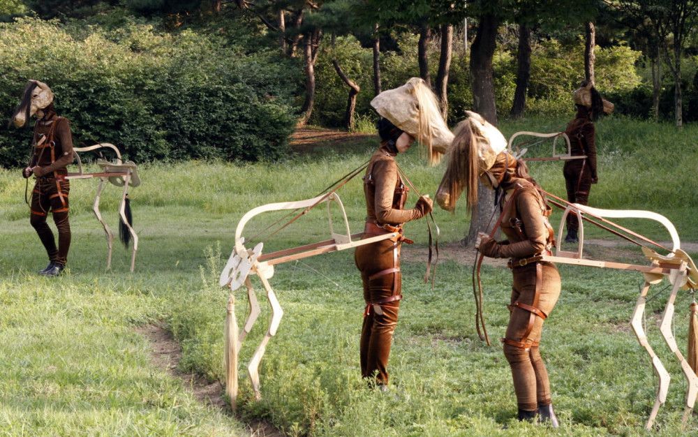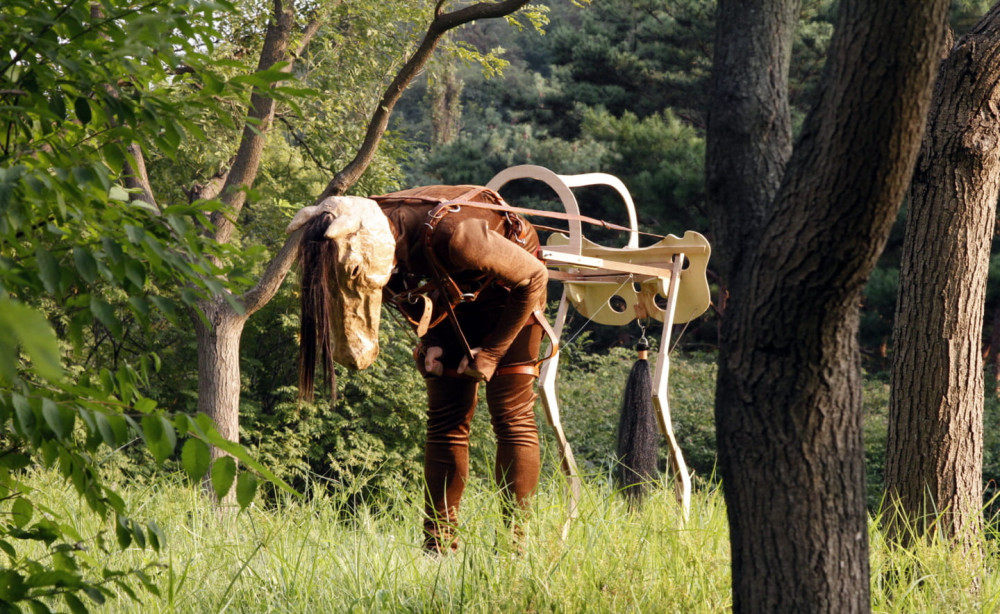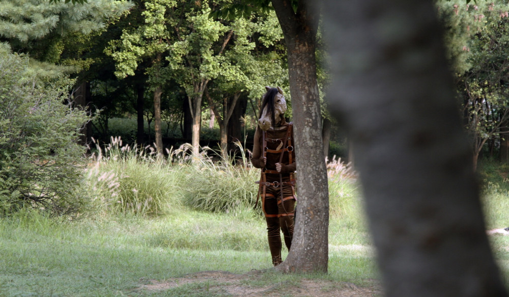 작가는 2013년 자폐 아동들이 동물을 직접 만지면서 신뢰와 공감 능력을 향상하는 치료법에 영감을 받아 이 작업을 시작했다고 한다. 인간과 동물의 만남에 주목해 말 머리 가면, 말가죽 같은 의상, 말의 신체를 본뜬 보철 장치를 제작하고, 이를 착용한 퍼포머들의 퍼포먼스를 통해 언어가 아닌 마음과 몸이 하는 말을 전한다. 야외에서 진행되는 두 시간가량의 퍼포먼스는 아주 느리게 무언가를 탐색하는 듯한 퍼포머들의 움직임으로 구성되는데, 퍼포머들은 온몸으로 말의 감각을 느끼고 이를 온전히 재현하고자 한다. 미디어시티서울 2016에서는 두 차례에 걸쳐 퍼포먼스가 이루어지며, 안무가 김명신과 다섯 명의 퍼포머가 함께 협업한다. 퍼포먼스 시간을 제외한 전시 기간에는 퍼포먼스에 사용된 가면, 의상, 장치들이 설치된다. 이는 단순히 말을 본뜬 퍼포먼스용 도구가 아닌 일종의 인간-동물을 위한 보철 기구라고 할 수 있다.