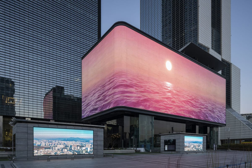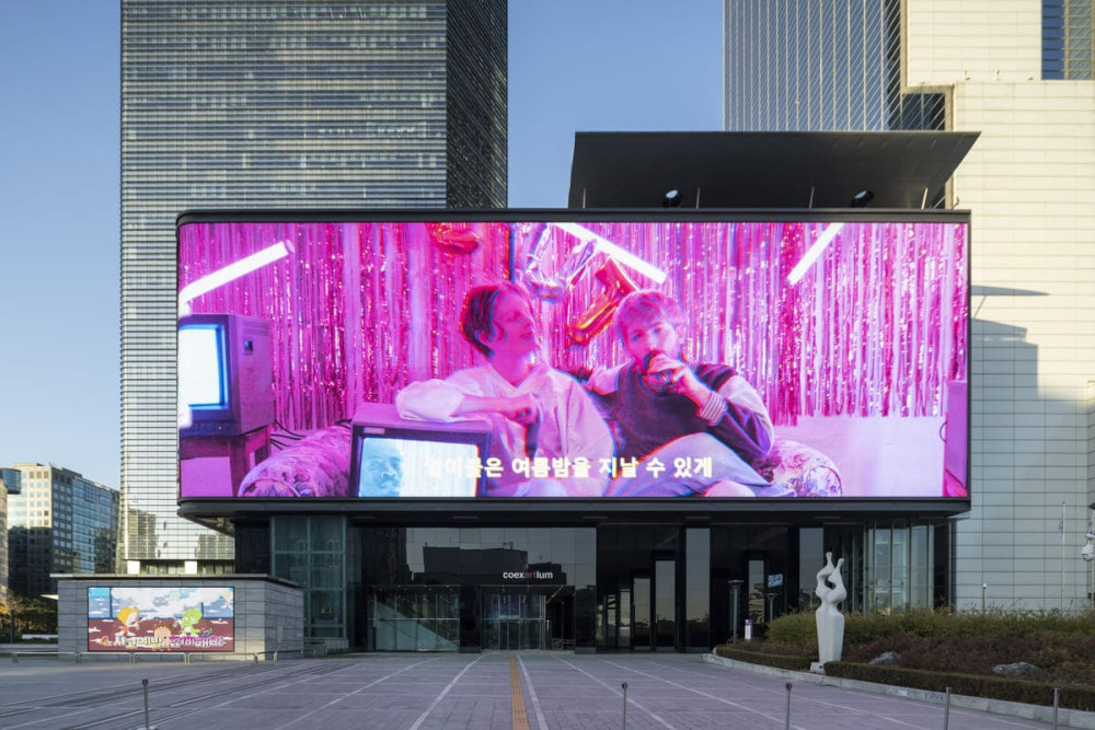 제11회 서울미디어시티비엔날레 《하루하루 탈출한다》 연계 프로그램 「유통망」 중 ‘제11회 서울미디어시티비엔날레 at 케이팝스퀘어’. 작가: 아이사 혹슨, 유리 패티슨, 취미가×워크스, 폴린 부드리/레나테 로렌츠, C-U-T. 삼성역 케이팝스퀘어미디어, 2021. 08. 28 - 11. 20. 사진: 글림워커픽쳐스