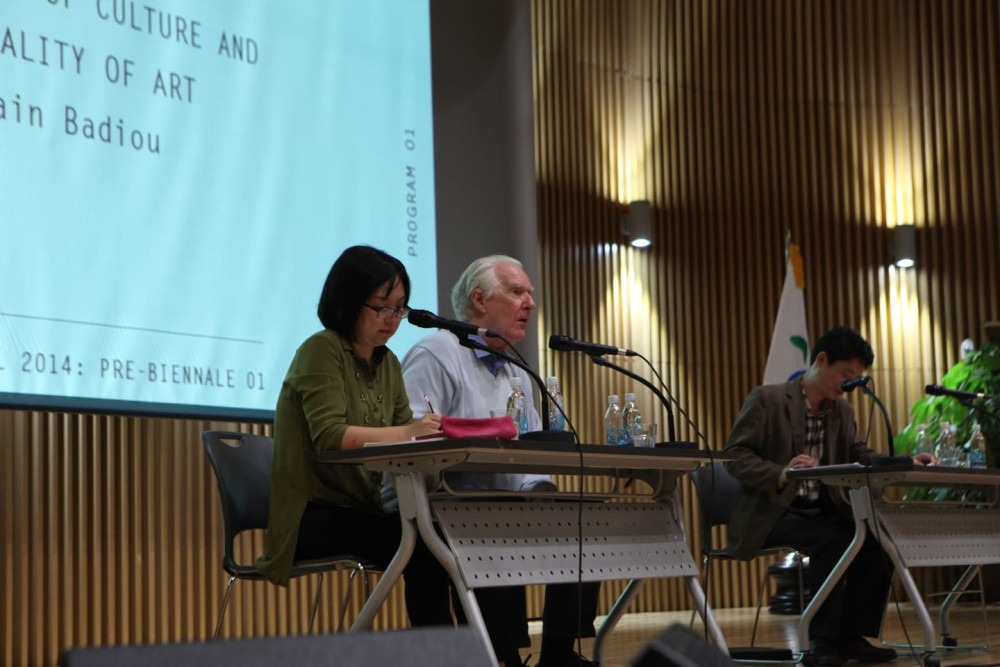 본 행사는 SeMA 비엔날레 미디어시티서울 2014의 첫 번째 사전프로그램(프리비엔날레) 「예술의 보편성과 ‘동아시아’」 중 알랭 바디우와 세실 빈터의 강연이다. 「예술의 보편성과 ‘동아시아’」 는 예술의 지역적 실천이 어떻게 세계 보편성과 연결될 수 있는지를 탐구하는 세 차례의 강연으로 구성되었다.