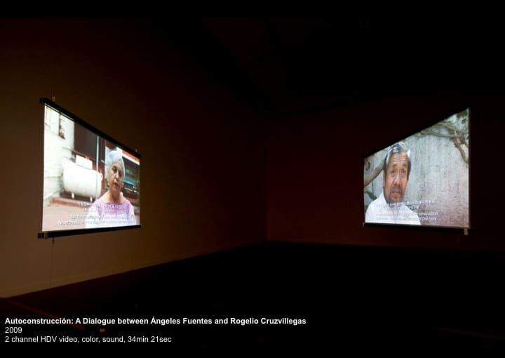 Here Cruzvillegas presents a two-channel video installation in which his parents share stories about their commitment to build a house and a sense of home in Ajusco, a part of Mexico City once thought to be uninhabitable. Through individual yet interconnected dialogues, Ángeles Fuentes and Rogelio Cruzvillegas recall developing a social architecture based on collaboration between friends and family that arose parallel with–and perhaps in solidarity against–the fragmented process of building that physically defines the neighborhood to this day. He has explored autoconstrucción (roughly translated as “self-construction”), a methodology and form of building that utilizes improvised construction techniques and materials in response to particular needs.