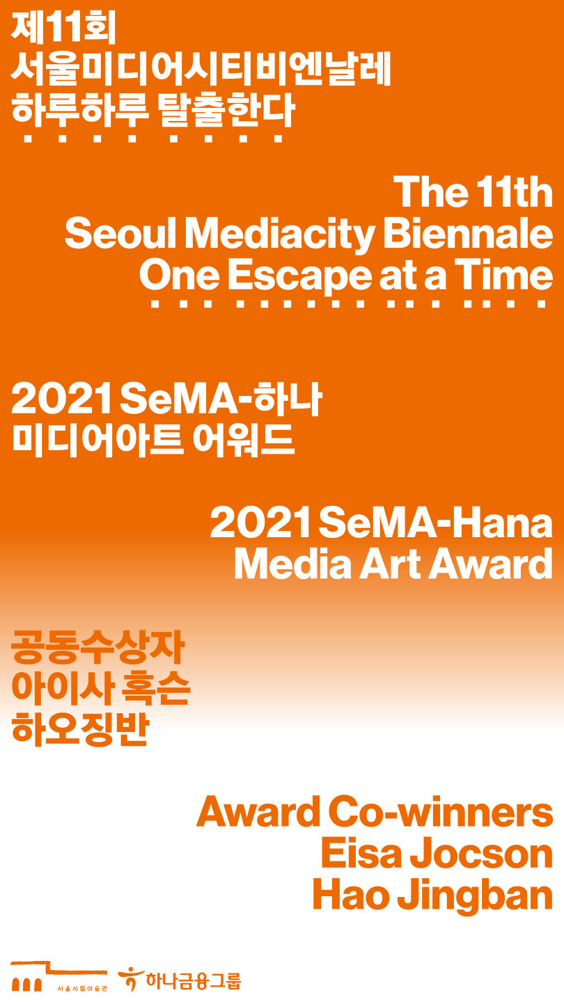 This event was the award ceremony for the 2021 SeMA-HANA Media Art Award. Founded in 2014 and supported by the Hana Financial Group, the SeMA-Hana Media Art Award is a major showcase of the group’s commitment to raising the profile and public awareness of modern and contemporary art in Korea. Co-organized by Seoul Museum of Art in conjunction with the Seoul Mediacity Biennale, the award is dedicated to supporting and fostering the art and cultural ground shared between Seoul and other cities of the globe. Selected by an international jury, the award is presented to a participant or participants as a recognition of their contribution to the biennale.