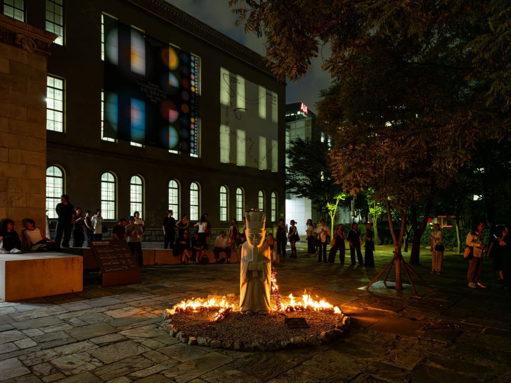 Combining the preoccupations of Land Art with traditional Korean ritual practices, Lee’s work often collaborates with natural elements—fire, water, wind, and smoke—and makes use of symbolic objects ranging from tree branches to hanji paper, stones, rope, and wire.