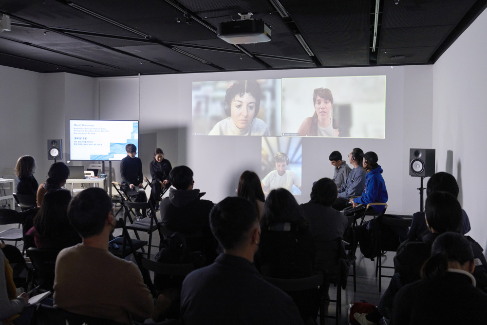 The 12th Seoul Mediacity pre-Biennale II Symposium TERRAINFORMING. Participants: Min-hyung Kang, Dong Hyun Gwon × Sea Jung Kwon, Jin Kwon, Nadoe, Nishat Awan, Radio EE, Rachael Rakes, Seba Calfuqueo, Sofia Dourron, Bo Wang, Zai Tang, Choi Chan Sook, Kent Chan, Hong Cheolki. Simultaneous Interpretation: Helen Cho, Julie Cho. Seoul Museum of Art. 2022. 12. 10 - 12. 11 (2 sessions). Photo: Lee Euirock
