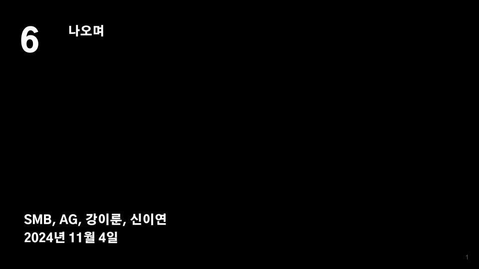 제13회 서울미디어시티비엔날레 사전프로그램(프리비엔날레) 『SMB 오픈 리서치』6장 「나오며」 슬라이드 표지, 2024. 참여자: SMB, AG, 강이룬, 신이연
