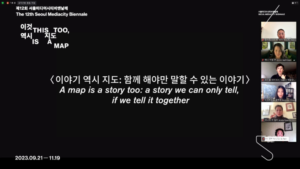 2023년 10월 21일에 온라인으로 진행된 제12회 서울미디어시티비엔날레 《이것 역시 지도》 토크 프로그램 <이야기 역시 지도: 함께 해야만 말할 수 있는 이야기>의 기록 영상이다.