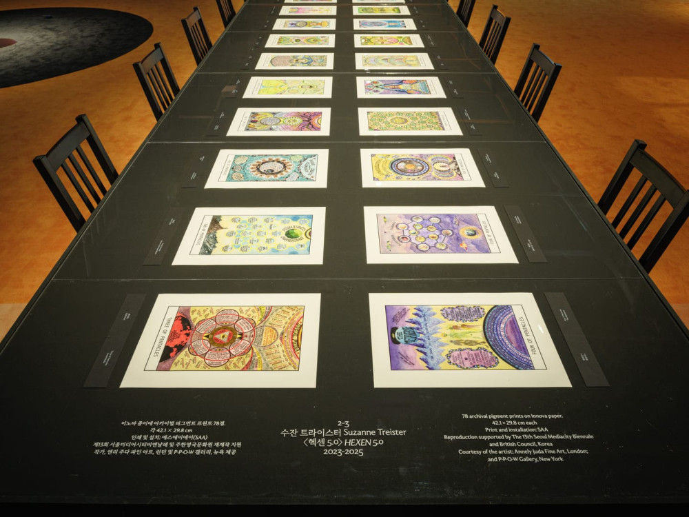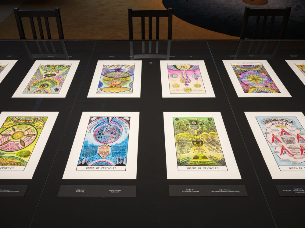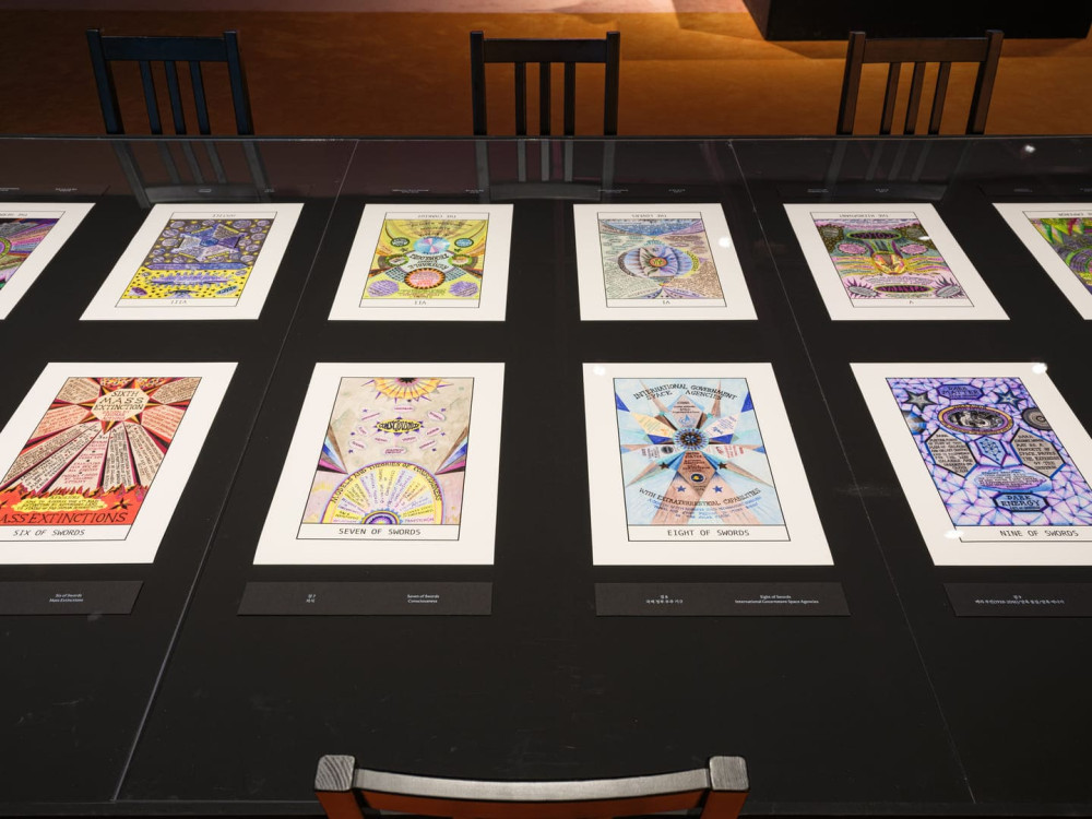 트라이스터는 타로를 재해석하며, 모든 점술 체계는 현재에 대한 정확한 진단을 기초로 삼는다는 점에 주목합니다. 새로운 소통 방식, 기업과 국가 권력의 변화하는 구조, 환경 적응, SF의 혁신 등 셀 수 없이 많은 탐구 분야를 서로 연결 짓는 작가는 관객으로 하여금 오늘날의 세계를 형성하는 요인을 성찰하고, 인간이 보다 윤리적이고 지속 가능한 미래를 모색하기 위한 방법을 생각하도록 장려합니다.