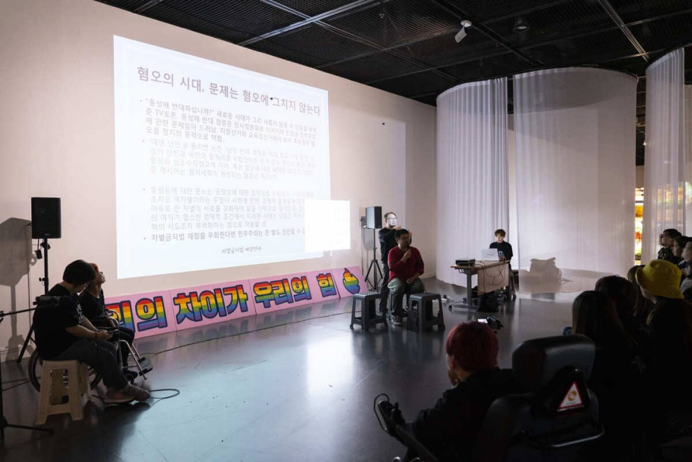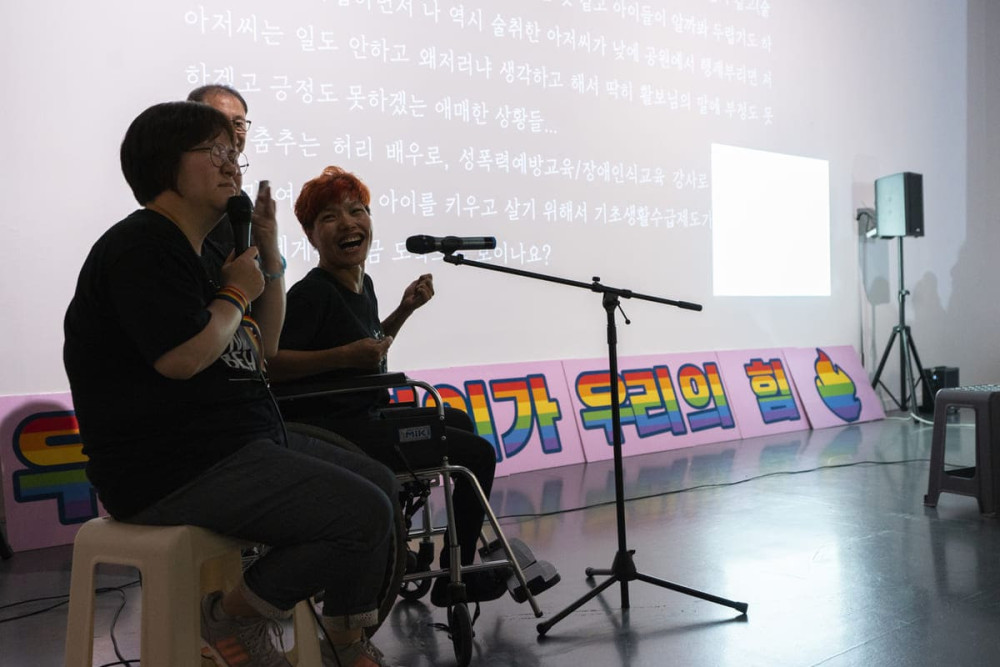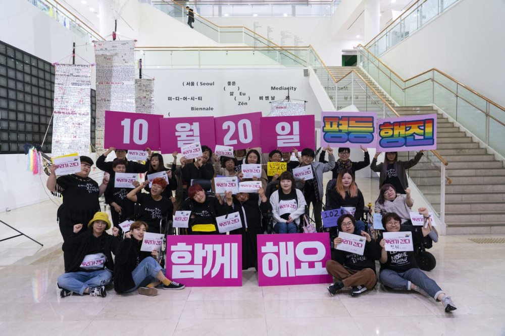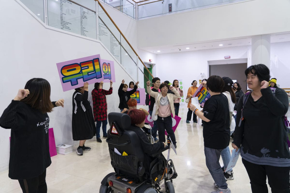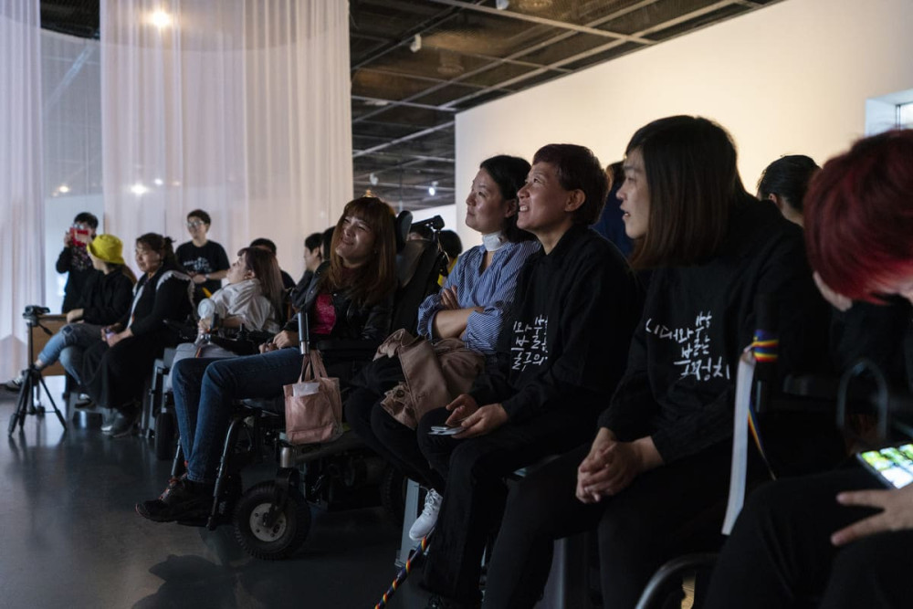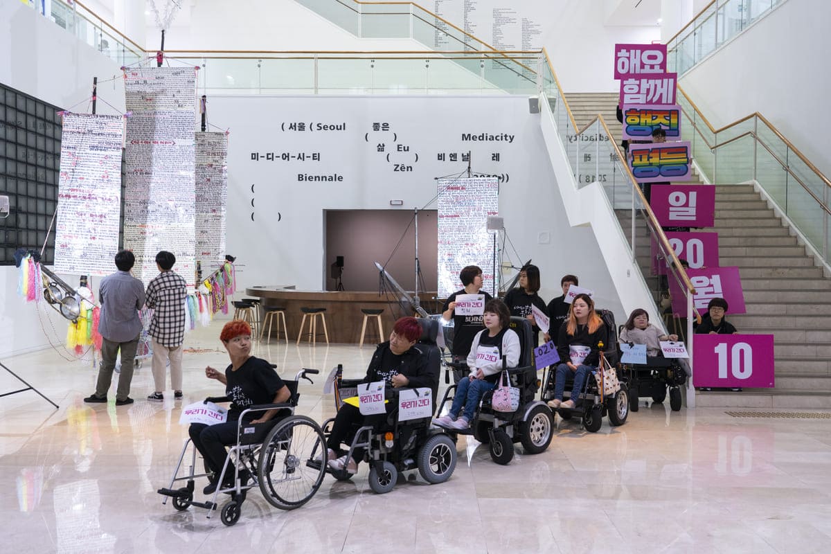 프로젝트 〈마침, 좋은 삶〉은 완성을 향한 것이 아니라 과정의 하나다. 장애여성에게 공적 공간은 허락되지 않거나 제한적이고, 그 공간에서 독립적이거나 주체적이기 어렵다. 〈춤추는허리〉는 이번 비엔날레에서 전시되는 장애여성의 몸을 거부하고, 자신들의 말과 몸과 공간을 보여주고자 한다. 〈마침, 좋은 삶〉은 몸과 정상성, 예술, 전문성을 질문하는 퍼포먼스다. 〈불화不和〉는 진입, 침입, 점거, 소풍과 같은 다양한 방법으로 공적 공간을 찾아 나선다. 〈일평단심2, 一平丹心2〉는 장애인 거주시설, 독립의 장소, 무대라는 세 개의 공간을 장애여성의 관점으로 재해석한다.