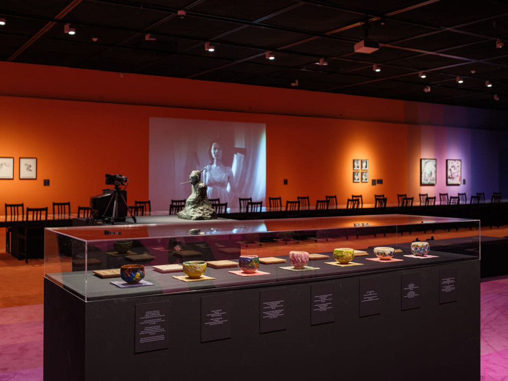 이곳에서 소개되는 각각의 찻잔은 오모토의 3대 영적 지도자인 나오히 데구치를 비롯해 교단의 여러 구성원들이 붙인 이름을 적은 나무 상자 뚜껑과 더불어, 오모토의 영적 발원지인 교토 아야베(綾部) 원단으로 수제작된 천 받침과 함께 전시됩니다. 유심히 들여다보면 오니사부로의 엄지손가락 자국이 남아 있는 찻잔도 발견할 수 있습니다.