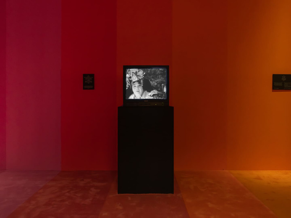 무성영화 〈쇼와 시대의 칠복신(七福神)〉에서는 정교한 의복을 갖추고 제목에 등장하는 칠복신을 연기하는 오니사부로가 새로운 매체를 통해 교리를 전파했던 선구적 시도를 보여줍니다. 영화의 타이틀 카드는 오니사부로가 고전 운율에 맞춰 손수 쓴 서체로 제작되었고, 그가 직접 작성한 시가 삽입되어 있습니다. 대부분의 필름은 일본 당국이 오모토교를 탄압하는 과정에서 소실되었지만, 예술을 영적 프로그램의 중심에 둔 오모토 운동은 오늘날까지 이어져 오고 있습니다.