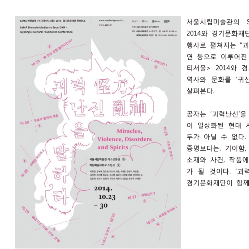 SeMA 비엔날레 미디어시티서울 2014 컨퍼런스 「괴력난신怪力亂神을 말하다」