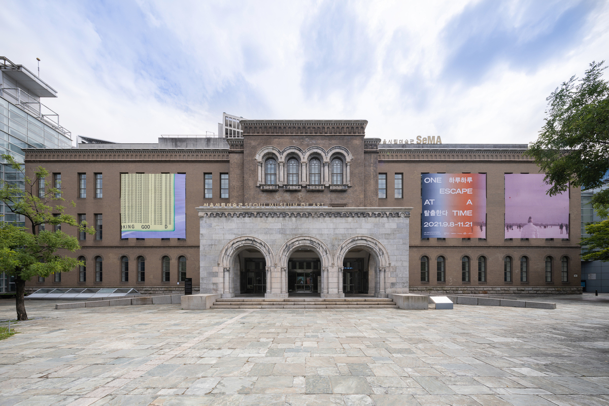 SeMA 비엔날레 미디어시티서울 2021 《하루하루 탈출한다》 전시 도슨트 「큐레이터 전시 투어」. 진행자: 융 마, 이지원. 서울시립미술관. 온라인. 2021. 09. 12 – 11. 21 (4회차). 미술관 외부 전경 사진: 글림워커픽쳐스