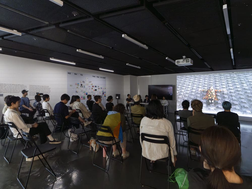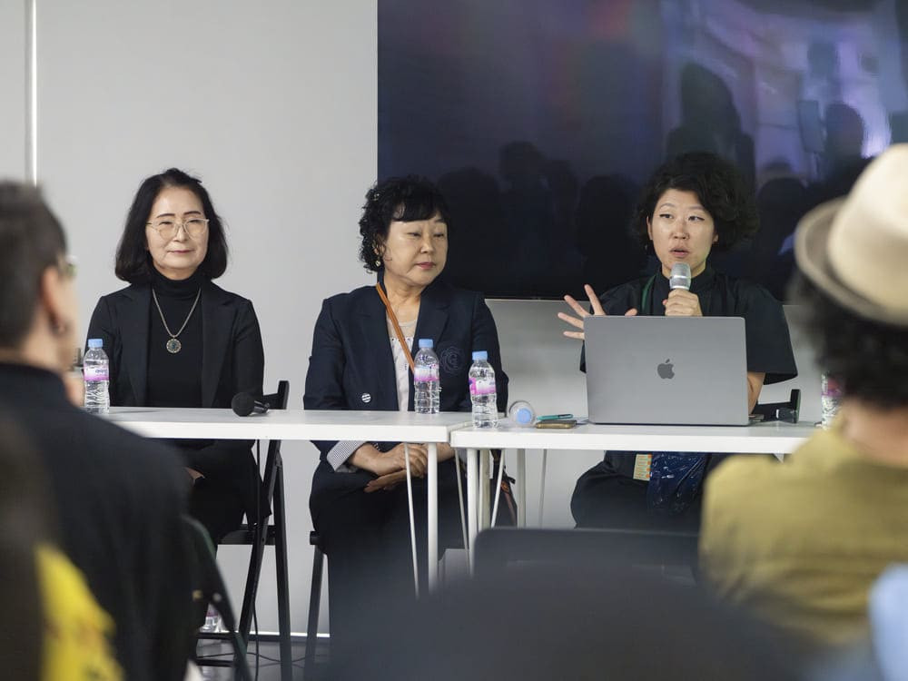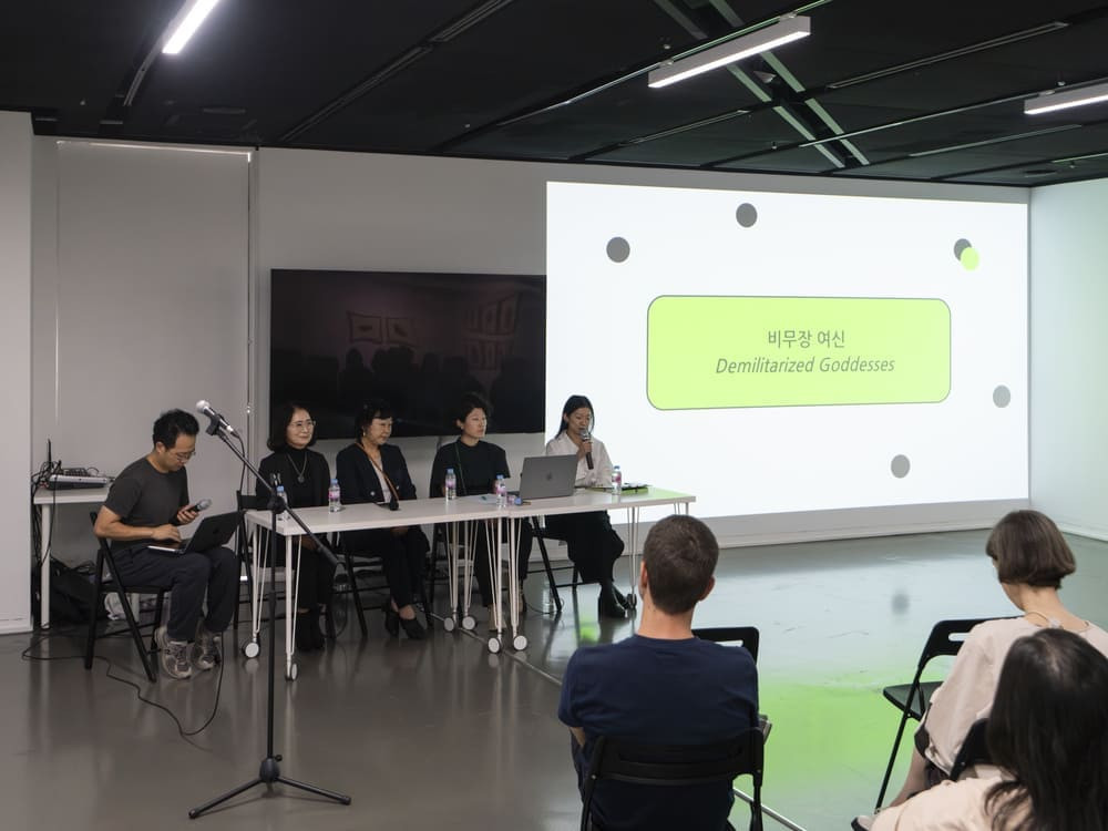 제12회 서울미디어시티비엔날레 《이것 역시 지도》 행사 「비무장 여신」. 작가: 조영주. 참여자: 서양숙, 전선자. 진행자: 옹졸린. 서울시립미술관, 2023. 09. 23. 사진: 글림워커스