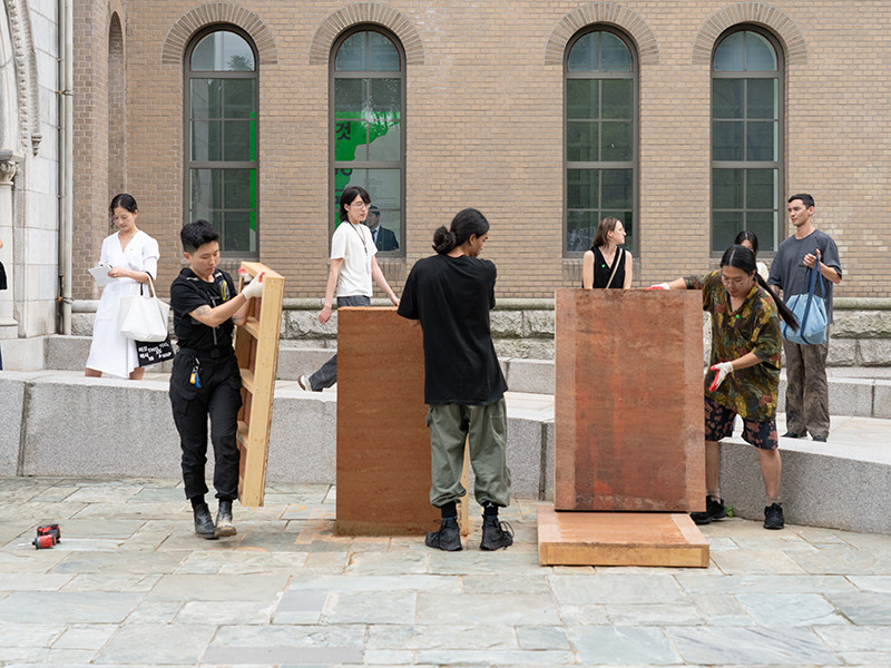 이번 비엔날레에서 새롭게 선보이는 작품 〈땅탑〉은 이끼바위쿠르르가 오랜 시간 천착해 온 예술적 주제의 과거와 현재를 압축해 보여준다.