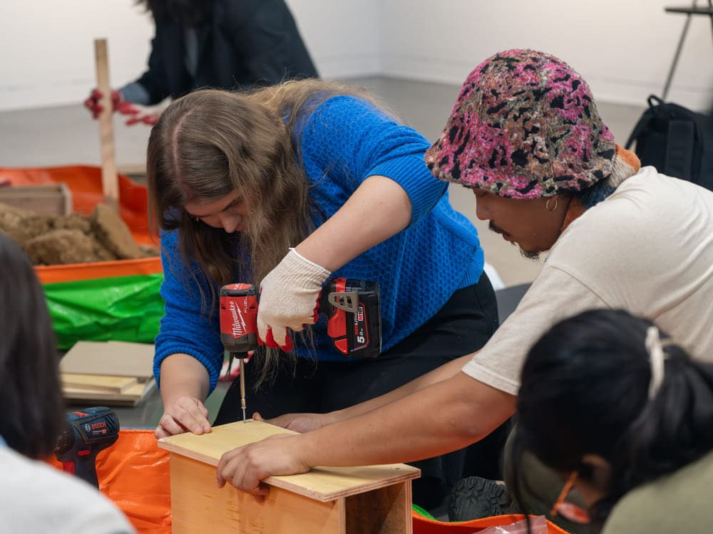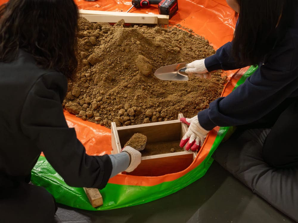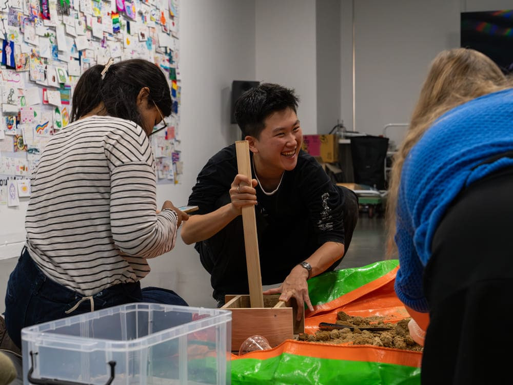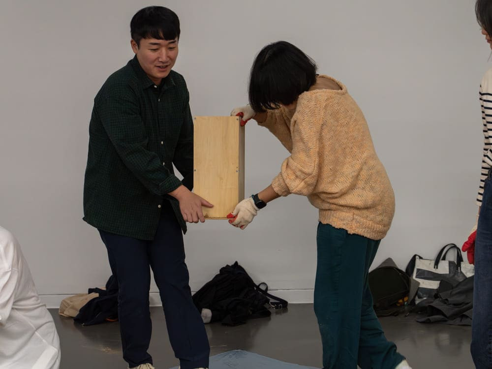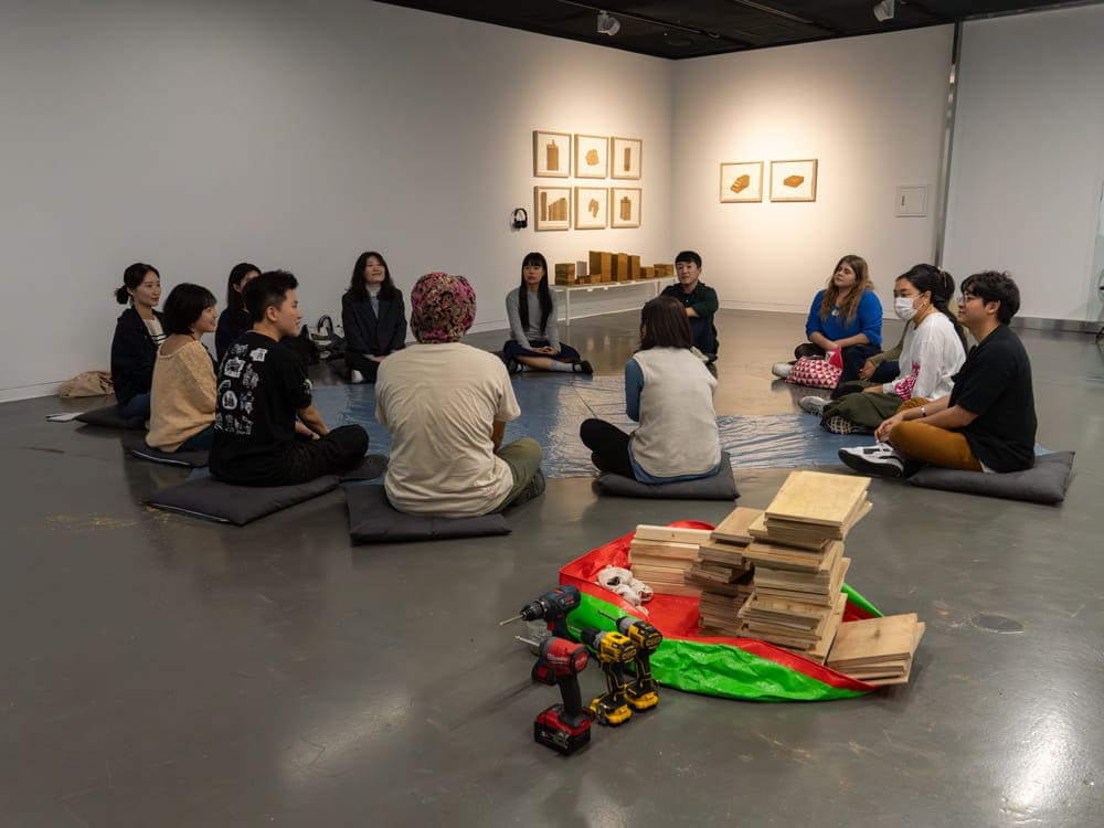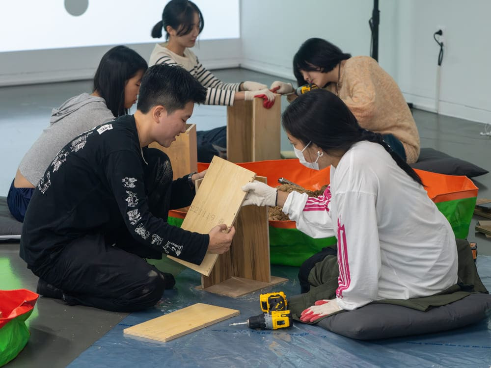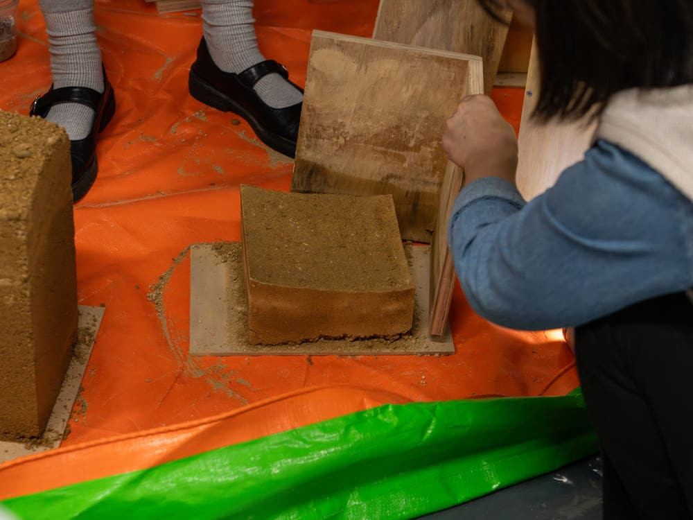 작가 이끼바위쿠르르가 진행하는 「땅탑 워크숍」은 이번 비엔날레에서 소개한 신작 〈땅탑〉의 제작 과정과 유사한 방식으로 작은 크기의 〈땅탑〉을 만들어보는 프로그램이다. 워크숍 참여자들은 작가와 함께 작은 나무 거푸집을 만들고, 그 안에 흙을 채우고 다져서 직사각형 모양의 조형물을 제작한다. 이렇게 완성된 조형물들은 하나의 좌대 위에 전시되며, 워크숍 진행됨에 따라 점차 쌓여가는 기념비가 형성한 흙 도시는 과거 산업 단지였던 곳에 들어선 신도시의 풍경을 연상시킨다.