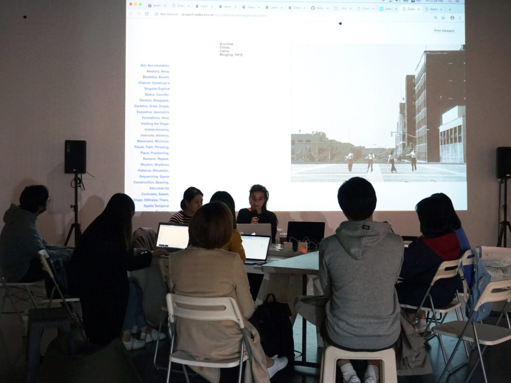 “예술적 방식(특히 협력적 교환 안에서 산출된)내에서 작용하는 ‘행동 사고’ 또는 ‘사고-감각-인지’의 본질을 탐구하는 것이다” - 엠마 카커 외